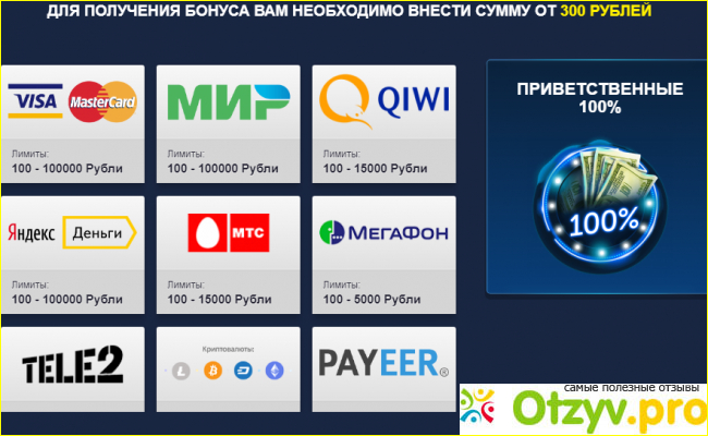 Вторая более или менее доступная акция – за первое пополнение от трёхсот рублей. На сумму начисляется стопроцентная накрутка. Это приятное дополнение, но не все так весело и красиво.