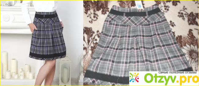 Совершенно другая, клетчатая, со встречными складками, длина 55 см, на бедрах - односторонние складки. Материал плотный, юбка предназначена для поздней осени или зимы.