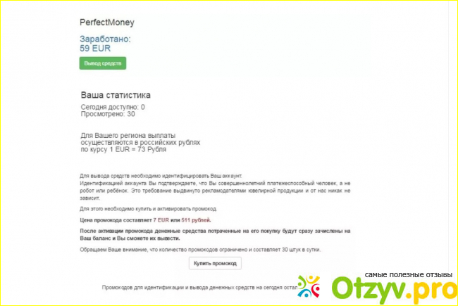 Однако после желания вывести деньги мы видим - минимальный порог - 60 долларов, но чтобы их вывести - нужен платный промокод. Благо, его можно купить за 500 рублей! Сказка же.