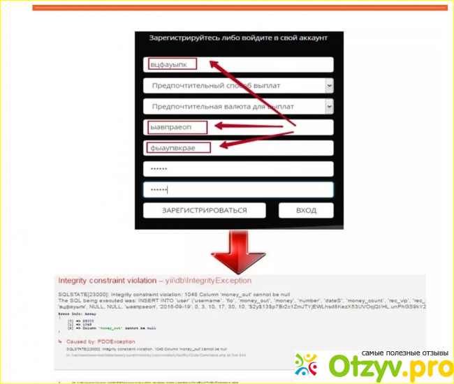 Но кое-как проникнув сюда, все-таки можем обнаружить массу кодовых ошибок в сайте. Попробуйте зарегистрироваться здесь, и я обещаю, что вы будете смеяться. Изначально здесь нужно было ввести адрес электронной почты и придумать пароль, ввести предпочтительный для вывода способ, но сейчас я не до конца понимаю, чего они хотят. Оцените, кстати, всю красоту этой формы - черный цвет всегда останется актуальным и модным!