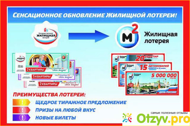 Так вот про жилищную лотерею хочу сказать, что она обыкновенная, зачеркиваете цифры и получаете квартиру, хотите верьте хотите нет, но мне кажется, что это очередной обман, потому, что квартиру давно уже у родственников тех кто это все организовывал, конечно для показухи могут 1 подарить, на этом все. Так что дорогие друзья, я бы советовал участвовать в лотерее, но надеется не на главный приз, а на что то более реально, 100-200 тысяч, может миллион вам еще дадут, все остальное никогда не слышал, чтоб кто то выигрывал. а телевизору я бы верить не стал судя по последним событиям сами понимаете так врут, что уже не помнишь где правда. Мне кажется вообще вся лотерея это большой обман и все равно даже если выиграешь на перспективе больше потеряешь, это просто нужно выиграть и навсегда перестать покупать билеты, но все это психология и так люди не поступают. Т. к. обычно все, все равно играют. Тем более когда билет стоит не так уж и много и его может себе позволить любой школьник в обмен на завтрак или что то типа того, по этому мне кажется лотерея так популярна билеты и даже несколько может себе позволить и богатый и бедный. По этому наверное все и играют. Стоил бы билет дорого никто бы не играл. Хотя опять же многие покупают не один два, а целые сотни каждую неделю и мне кажется это уже зависимость которую нужно лечить, т. к. человек хочет не заработать своим трудом, а выиграть, а значит это уже азарт, а не что то реальное, а там и до игровых автоматов не далеко.