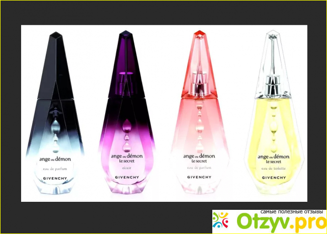 В данном аромате шикарно сочетаются аккорды фруктов и цветов. Живанши Ange Ou Demon сочетает в себе одновременно и свежесть, и вкусную теплоту, раскрывается на коже практически сразу.