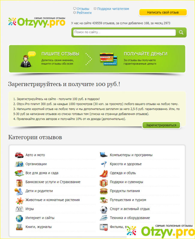 Как и во многих сайтах, на Otzyvy.pro имеется реферальная программа, и платят за каждого реферала здесь побольше, чем на других аналогичных сайтах и это тоже радует пользователей данного сайта.