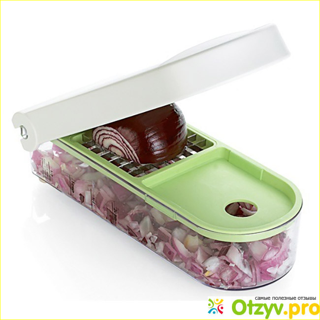 Несмотря на то. что у овощерезки достаточно острые лезвия. хочется отметить сразу. что измельчить с помощью этого приспособления очень твердые продукты у вас точно не получится. Например. если вам нужно измельчить луковицу, то скорее всего это у вас не получится. Во-первых луковица скорее всего просто на просто раскрошиться на кусочки. А во-вторых вероятнее всего у вас сломается овощерезка. чем получатся в конечном итоге ровные кусочки.