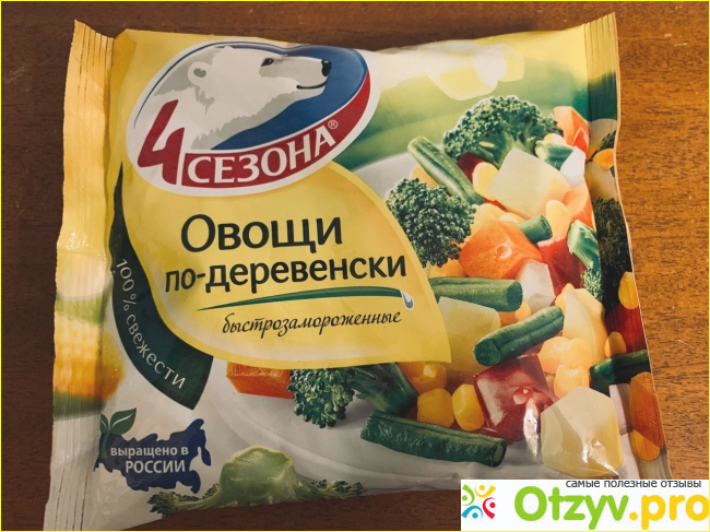 И теперь он понимает, что полезное может быть вкусным и разнообразным. Я покупаю разные овощные смеси. Одной из наших любимых является деревенская от “4 Сезона”. Ее точное название - овощи по-деревенски. И сегодня я хочу рассказать не только о ней, но и о похожем продукте от “Хортекс”. Эту смесь вместо уже привычной упаковки с белым мишкой домой принес муж. Перепутал или взял первое попавшееся.