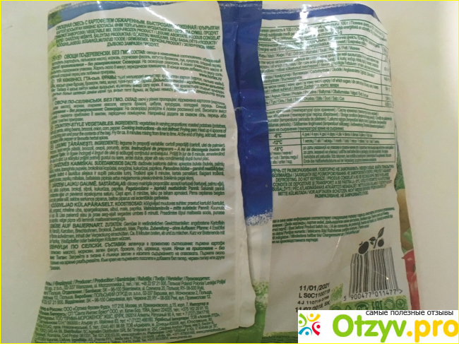 Вот смесь от “Хортекс”. Удивлены? Я тоже была в шоке. Гнилая морковь с черной сердцевиной, недочищенный картофель, три маленьких обледеневших соцветия капусты. Брокколи здесь очень мало. Смесь отправилась в мусорное ведро. Мы не привыкли употреблять в пищу гнилые овощи. Я отдаю свое предпочтение смеси от “4 Сезонов” и однозначно рекомендую этот продукт.