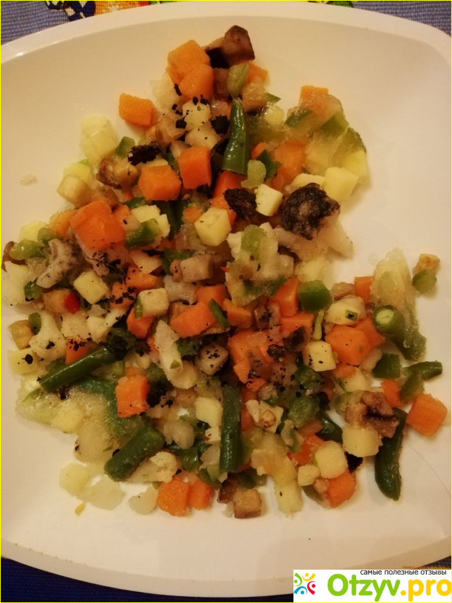сли идеальное замороженное рагу из овощей и существует - то оно точно перед вами. Посмотрите на нарезку и ее качество, на то, какие красивые и чистые овощи в смеси. Самые большие здесь кусочки помидор, но они и готовятся быстрее других овощей, соответственно производитель позаботился и об этом. Мне очень понравилось на вкус это рагу. В следующий раз приготовлю с филе цыпленка.