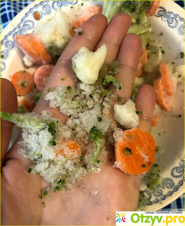 На упаковке фото отборных овощей. Соцветия одного размера, аккуратные, кружочки моркови порезаны рельефными волнами. Такое блюдо можно даже гостям подать. Должно получиться не только красиво, но и вкусно. Все так хорошо начиналось, да и цена такая недорогая относительно, все вкусное и любимое в одной пачке. Так я думала, пока не открыла ее. А в пачке меня ждало полнейшее разочарование.