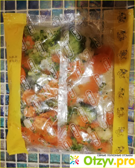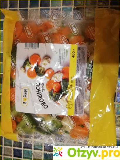 Больше всего меня впечатлило количество моркови. Можно сказать, что смесь состояла из нее на 50%. Это явный перебор, который точно отразился бы на вкусе. Но пробовать овощи из грязной ледяной глыбы мы не стали. Поужинали легким салатом, а это овощное трио отправилось в мусорку.