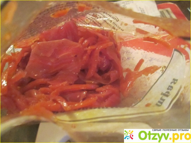 С обратной стороны почти все тоже самое - острая закуска из моркови, капусты и , дополнительно, свеклы