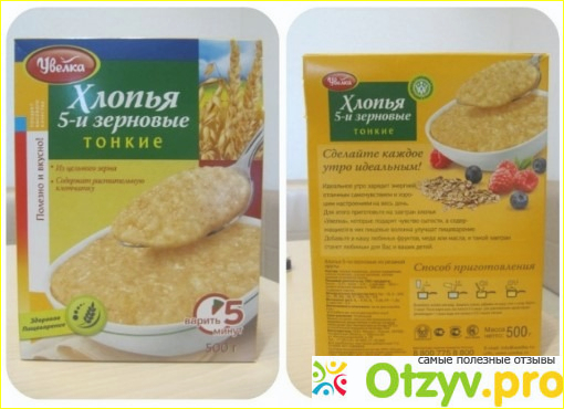 Хлопья данного производителя выглядит очень привлекательно, видно что они прошли хорошую сортировку, золотистого цвета, гладенькие, отсутствует какая-либо шелуха или дополнительные вещества. Каша, которая готовится получается очень аппетитной, ценной и реально после неё долго не хочется есть. Определённое удовольствие получаешь от того, что это зерно минимальную отработано, и сохранённы все полезные вещества и витамины. Чтобы получить подобный бонус, можно и подождать минут 20, пока кашу будет приготовлено.
