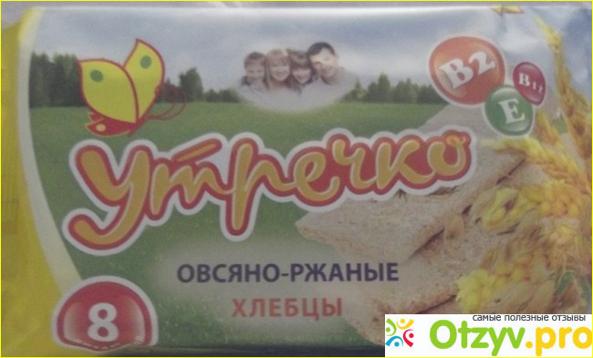 Это оказались овсяно-ржаные хлебцы "Утречко". Как я сразу увидела из информации на упаковке, они содержат 8 витаминов, что сразу же наводит на мысль о пользе данных хлебцев не только для пищеварения и поддержания фигуры, но и о пополнении организма витаминами. Пачка на вид довольно объемное, но количество хлебцев в ней на взгляд определить не предоставляется возможным - упаковка не просвечивает, достаточно плотная.