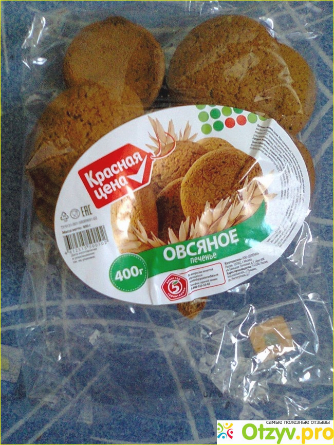 Но рынки, где продается развесное овсяное печенье, находятся довольно-таки далеко от нас, а близко в дома у нас магазины типа "Магнита", "Пятерочки", "Ситно" и т. д., в общем сетевые. А в сетевых как известно очень часто продается продукция, которая производится специально для этого магазина. У "Пятерочки", к примеру, это "Красная цена". Вот от этой марки я недавно и брала овсяное печенье на завтрак к чаю, еще первомайские праздники вдохновили, захотелось чего-то такого.