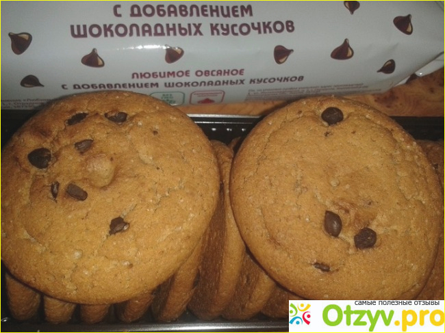 Печеньки имеют характерный для овсяных цвет и запах. Правда тут еще видны кусочки шоколада. Оно действительно вкусное, свежее. Сразу чувствуется, что это настоящее овсяное печенье, такое, каким я его помню еще с детства. Кусочки шоколада придают ему особенную вкусность.