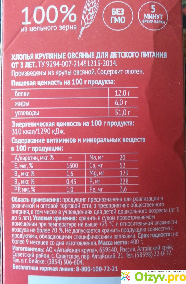 И на коробке об этом содержится достаточно убедительная информация. Особенно проникаешься доверием к этим хлопьям, прочитав, что эта овсянка рекомендована для детского питания – с трехлетнего возраста.