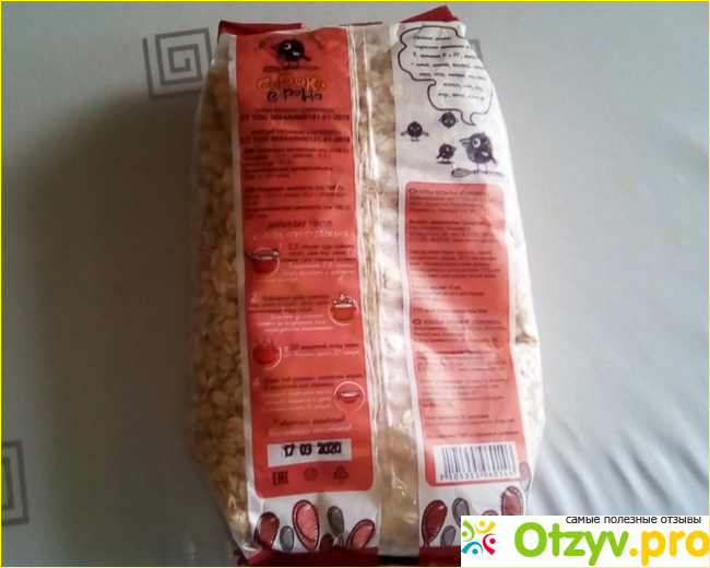 На оборотной стороне написано, как варить овсяную кашу. Это для тех, кто не знает пропорций крупа/жидкость.