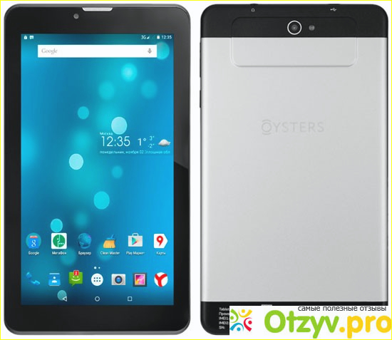 Планшет Oysters t72hm 3g выглядит примерно стандартно, как и подобного рода планшеты, только вот стоит он в 3 раза ниже, чем его известные соплеменники, но это все из за внутренних скромных характеристик, если Вы покупаете именно для работы в автомобиле, то почему бы и нет, а вот если Вы хотите на нем увидеть что то большее и скачивать приложения, игры, музыку, а также делать неплохие снимки и снимать, то этого увы с ним не пройдет, так как он слабый.