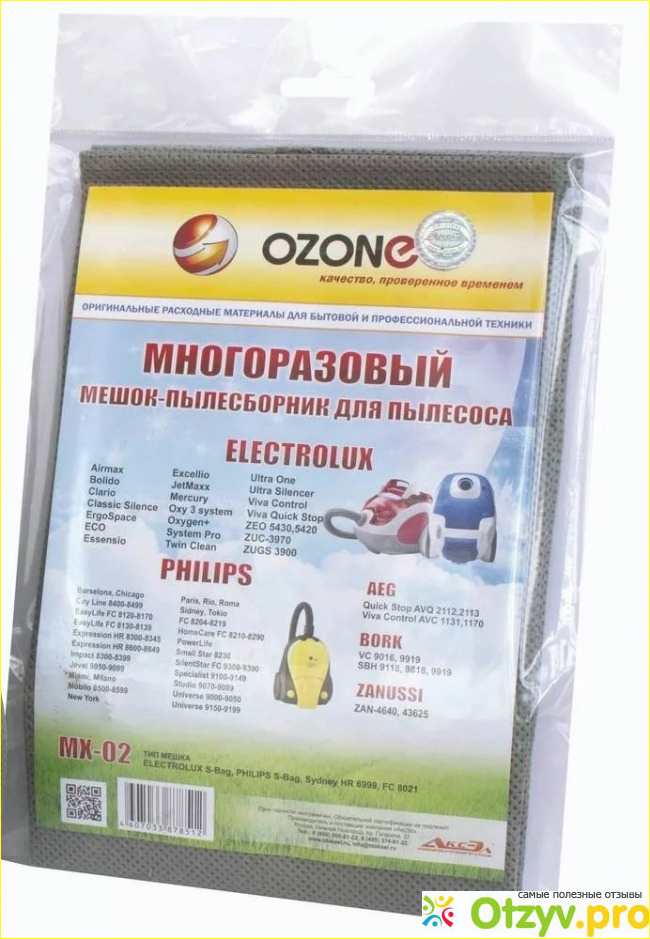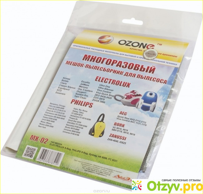 Пылесборник для сухой уборки, мешок изготовлен из синтетика. В принципе, он будет служить долго, главное подобрать правильный пылесборник для своего пылесоса. К примеру к данному пылесборнику, не все модели пылесосов подойдут. OZONE, это пылесборник который имеет высокое качество, потому что синтетический материал из которого он сделан, очень прочен. Более того, даже самые мельчайшие частицы пыли, остаются внутри пылесборника а не вылетают наружу. Данный мешок, способен заполняться на все сто процентов как я уже говорил, то есть полностью. И выдерживает до тридцати килограмм пыли. Вы уже представили наверное, насколько редко вам придется чистить данный мешок.