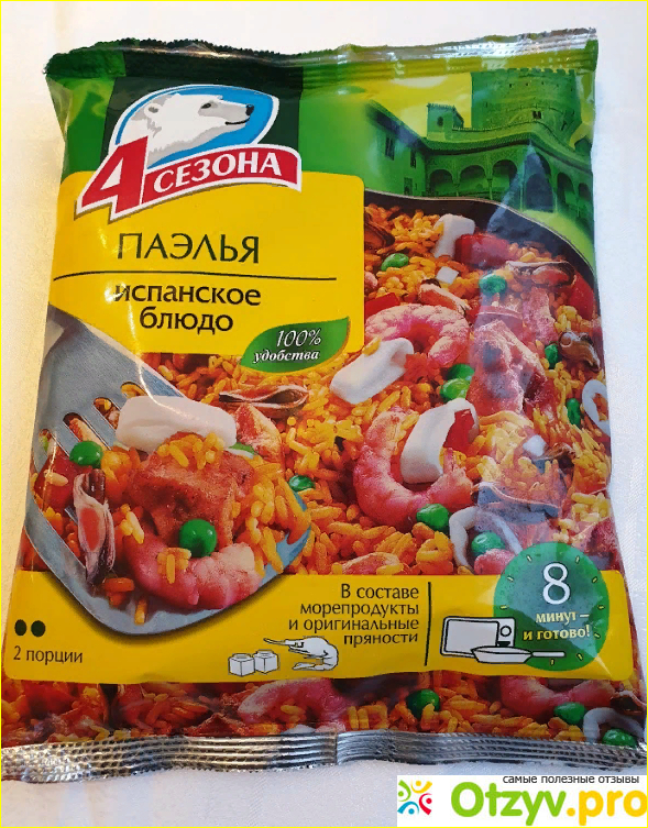 Эта яркая упаковка, не что иное, как замороженный продукт от марки 4 сезона, внутри «Паэлья».
