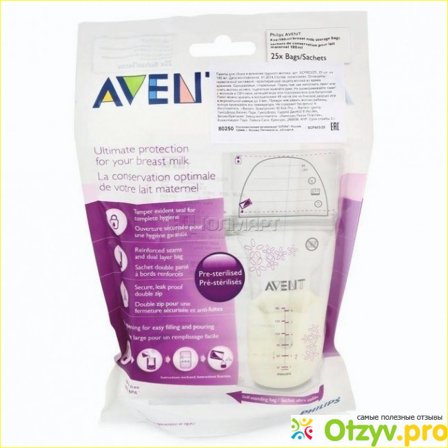 Довольно маленькое число брендов предлагают пакеты для хранения этого ценного для грудничков продукта. Я отдала предпочтение "Филипс", так как молокоотсос тоже выбрала данной марки да и отзывов в инете, причем положительных, было много. А это для меня значило, что товар популярный.