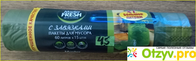 Время от времени брала пакеты Master Fresh, а тут знакомый бренд и адекватная цена. за 15 пакетов на 60 литров, отдала всего 45 рублей. Завязки мне нужны были однозначно, вот и выбрала.