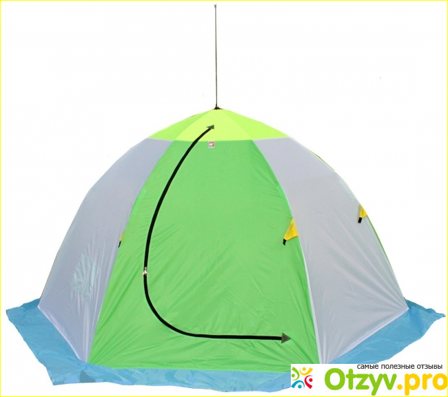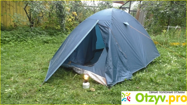 Вся палатка компактная, легкая, легко ее собрать и разобрать, крепится к каркасу при помощи крючков, что очень удобно, молнии застегиваются и расстегиваются легко и без промедления, вход закрывается плотно, да и сама ткань всей палатки и тента имеет достаточно плотную структуру, швы проклеены специальным герметиком, для защиты от дождливого климата и расползания