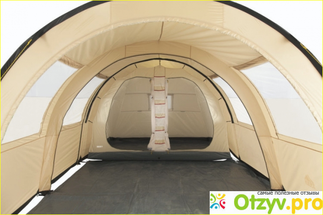 Выполнена она только в одном песочном цвете. Благодаря такой расцветке она не пачкается и не выгорает на солнце. А также светло-песочный цвет не сильно нагревается на ярком солнце, а отличии от более темных вариантов. Рассчитана такая палатка на семью из пятерых человек. Но при желании в ней может поместиться и большее количество людей. Особенно если семь включает детей.