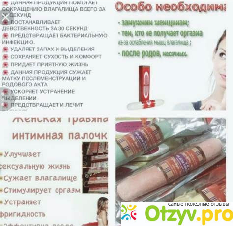 С первого раза у меня ввести не получилось, но я постаралась, поднажала, и сделала это аж два раза с внутренним массажем в секунд 10-15. Рекомендуется, вводите я от одного до 4 раз (за один прием, разумеется) и при каждом ведении проделывать массаж в течение секунд 30. Я решила не рисковать первый раз и не переборщить (ведь я поняла, что переборщить вполне реально), поэтому, как я и говорила, ограничилась двумя разами по 15 секунд. Ощущение стянутости пришло ко мне практически сразу. Я почувствовала как там всё сжалось в комочек, вследствие этого я поняла что 2 недолгих раз мне вполне хватило. Так как я уже была научена негативными отзывами, к мужу со стянутой промежностью я тут же бежать не стала, весь эффект сохраняется в течение пары дней, а 5 минут после применения не лучшее время для интимной близости. Хочу вас предостеречь, что после применения могут появиться неприятные ощущения в виде жжения, однако они быстро проходят и больше не беспокоят. Осмелилась подайте я с предложением близости к мужу аж на следующий день, часов через 12. Хочу хочу вам сказать что желание заполучить мужа у меня появилось ещё раньше. Да, там было суховато. Но у меня и так с этим есть проблемы, поэтому всегда под рукой у нас есть гель-лубрикант. Прикольно было наблюдать за реакцией мужа, когда он с первого раза не смог в меня войти. Он не понимал, что такое происходит. Да и мне понравилась, как я четко его ощущала в себе: каждый толчок, каждое движение. В общем, кайфанула и я и муж. Вещь стоящая, как оказалось. Не рискнула применять в ближайшее время после первого применения. Взялась за палочку аж где-то через неделю. Повторила всё проделанное ранее, эффект повторился снова. Держится такая узость примерно дня 2-3, это правда. Слышала, что со временем палочка применяется всё реже и реже, потому как мышцы влагалища приходят в норму. Честно говоря, у меня сейчас такая же ситуация, палочкой пользуюсь реже. И хочу сказать, что это всё ещё та одна палочка, которую я заказывала в первый раз на AliExpress. То есть экономное вещь, как вы понимаете.