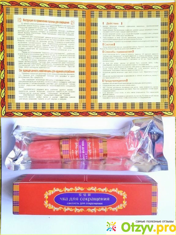 Палочка чка Доянь известна во всем мире. Ее называют палочкой девственности, женской Виагрой. Она создана для того, чтобы хотя бы на некоторое время вернуть женщине узкое, молодое влагалище, не измененное родами. Палочку изготавливают из квасцов, жемчужного порошка, травяных экстрактов. Проникая внутрь влагалища, палочка вызывает изменения состава микрофлоры. ПРоисходит буквально стягивание, сокращение стенок. Сама по себе палочка не большая, около 15 см в длину. Малого диаметра.
