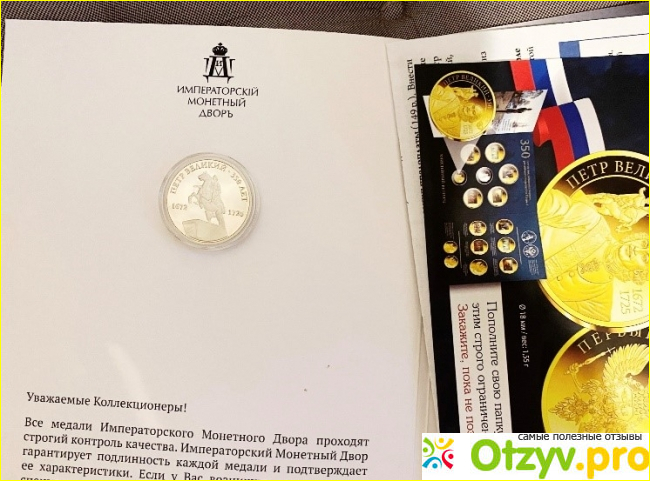 Сейчас хочу оставить отзыв про серебряную монету Петр 1, которую выпустили в честь 350 лет с рождения первого российского императора. Я горжусь историей нашей страны, у нас было и есть много великих людей, достойных внимания и уважения. Петр 1 один из них, по моему мнению. Медаль заказывал с доставкой на дом, курьер доставил быстро, быстрее, чем по почте. Оплачивал наличными курьеру. Монета очень красивая, качество чеканки понравилось, продуманна каждая деталь продумана. На медали есть проба, как и на всех изделиях из драгметаллов. В очередной раз доволен приобретение новой медали в свою коллекцию. Спасибо Императорскому монетному двору за добрые дела.