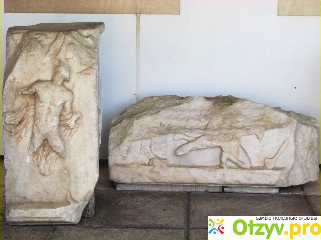 Однако в XIX веке английские археологи нашли остатки мраморных плит с рельефами исторического и мифологического содержания. Часть из них выставлена в Лондоне, часть экспонируется в Бодруме в галерее, которая находится рядом с остатками фундамента, колонн и подземных переходов