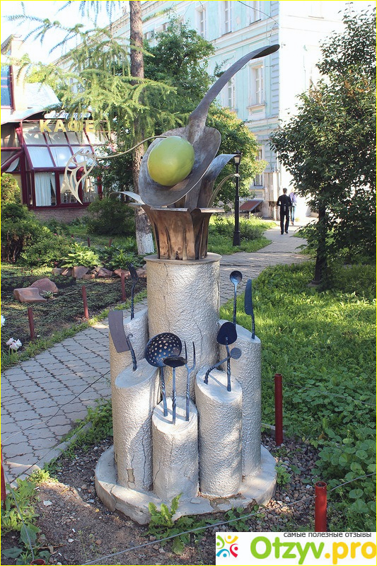 Еще один интересный памятник есть - это памятник вкуса "Ложка вкуса" - на нем изображены кухонные приборы и на ложке лежит большая зеленая оливка, такая аппетитная. Всегда, проходя мимо, просыпается аппетит
