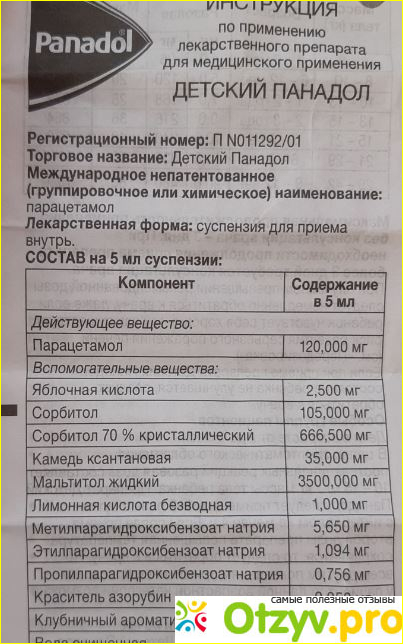 Если с приёмом данного средства у взрослых все понятно, то у детей тут больше разнообразных тонкостей. Странно, что его везде указывают, как недопустимое средство для детей до 3 до 6 лет. Но это скорее всего относятся только к таблеткам. Для детей до 6 лет изготавливают отдельный Панадол в виде сиропа, который можно употреблять младенцам даже с трёх месяцев. Так случилось, что когда мы сидели на самоизоляции всей семьёй, то всё равно умудрились чем-то заболеть. Была сильная температура и удушающий кашель. Как раз у ребёнка в этот момент начали прорезаться зубки, видать попала какая-то инфекция. Первоначальное время я ребенку давала парацетамол, который изготавливается в виде сиропа. Пили его довольно часто, но толку от него не было никакого, малышка по-прежнему испытывала явный дискомфорт. Было такое ощущение, что детский организм уже привык к нему и он на него не действовал. Исходя из этого, детский врач прописала нам Панадол. Честно говоря, первое время я не поняла в чём смысл заменять чистый парацетамол на препарат, в котором он же и содержится. Но врач у нас не плохой, и она меня убедила, что сменить средство необходимо. Я согласилась и приобрела его. Продаётся он в небольшой продолговатой коробке, где находится баночка с сиропом, шприца для измерения дозировки и подробная инструкция. На коробочке указывалось, что в этом средстве нет спиртосодержащих компонентов и сахара. Так что гарантировалось, что малыш не испытает каких-либо аллергических реакций. Изготавливается средство во Франции, и имеет ёмкость 100 миллилитров. На вкус и запах он с клубничным экстрактом. Принимать его нужно исходя из дозировки, рассчитывая массу и возраст ребенка. В моём случае мы применяли чуть больше 5 миллилитров. Баночки изготовлен из непрозрачного стекла, видать, чтобы на препарат не воздействовали солнечные лучи. Правда кто же хранит такие средства на солнце? Крышка снабжена защитой от ребенка, так что детям будет очень трудно её открыть, особенно в маленьком возрасте.