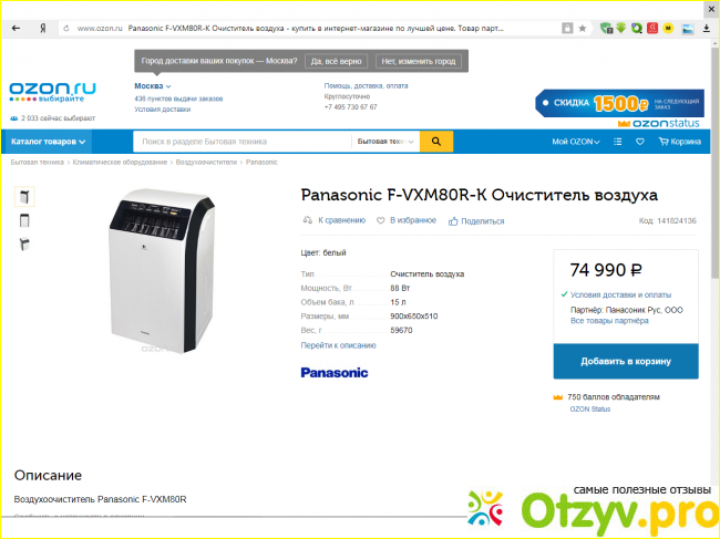 Пересмотрели все возможные варианты, хотелось, чтобы было много дополнительных функций, так что в итоге остановили свой выбор на такой модели, как Panasonic F-VXM80R-K. И я бы конкретизировала, что это не просто прибор для очищения воздуха, а именно целая станция.