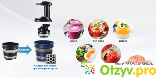 изготовленного нержаваеющей стали (основание), кроме того благодаря невысокой скорости вращения шнека (всего сорок пять оборотов в минуту) сохраняются все полезные питательные вещества.