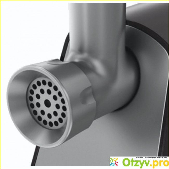 Сам корпус выполнен из неплохого пластика, который очень прочный и качественный. Поверхность глянцевая, поэтому смотрится очень красиво. Но очень важно, что конструкция не вся пластиковая, передняя часть металлическая изготовлена из нержавеющей стали. Единственное, что может быть неудобно это отсутствие круглой выемки, которая есть у других моделей, в которые должна устанавливаться круглая посуда. Но в это не критично, можно легко подобрать посуду, возможно благодаря тому, что вынос голоски достаточно большой, поэтому когда готовишь фарш или что то другое все попадает точно в посуду. Все остальные детали и элементы выполнены за высококачественной нержавеющей стали. Мясорубка устойчиво стоит на поверхности во время работы и не сильно вибрирует, благодаря наличию прорезиненных ножек. В комплекте идет специальный толкатель, с его помощью использовать мясорубку становиться еще проще и удобней.