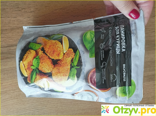 Панировка довольно крупного помола, желтого цвета и довольно приятного аромата.