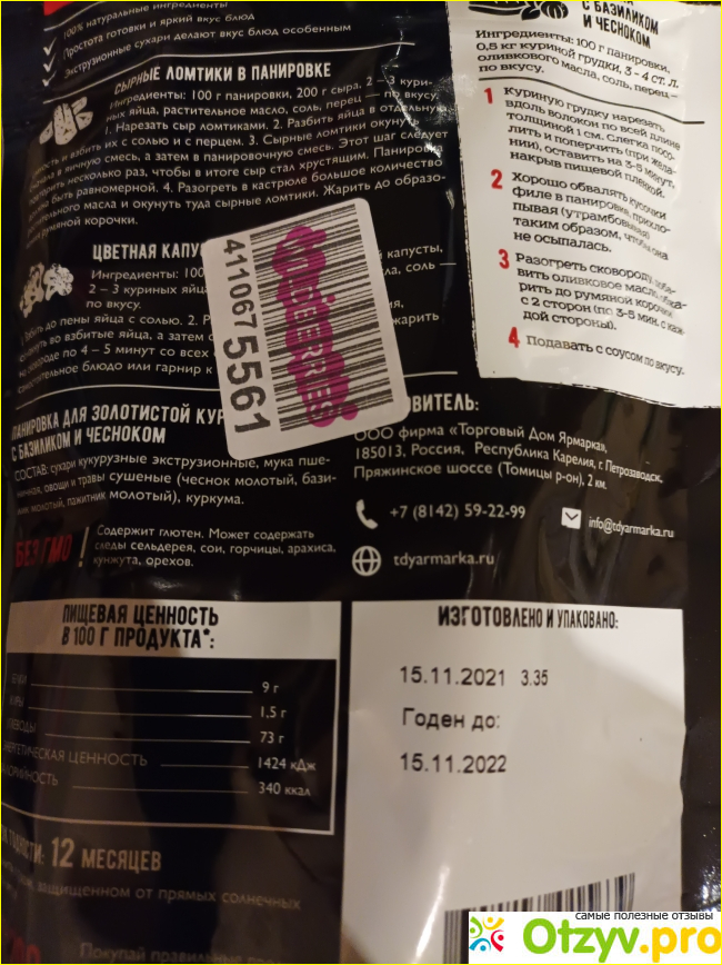 Вкус получается при таком способе приготовления очень насыщенный. Как только курица в начинает нагреваться – запах в доме стоит непередаваемый. Даже больше скажу – когда пачку открываешь, уже классный аромат идет. В общем, курица получается красивой, с хорошей, прожаренной корочкой. Я и грудку и бедрышки пробовала жарить, и другие части – в любом случае получается просто объедение. У меня даже соседка по лестничной площадке как-то раз спросила, что я такое вкусное готовлю – видимо запах за пределы квартиры просочился, пришлось рассказать ей про эту панировку. Там на пачке еще и другие рецепты указаны, не только с курицей (что очень удобно), обязательно попоробую.