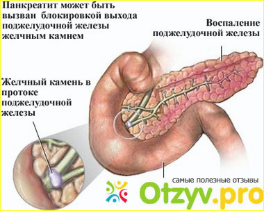 * Желчекаменная болезнь. При обострении желчнокаменной болезни примерно в 20 случаях наступает панкреатит.