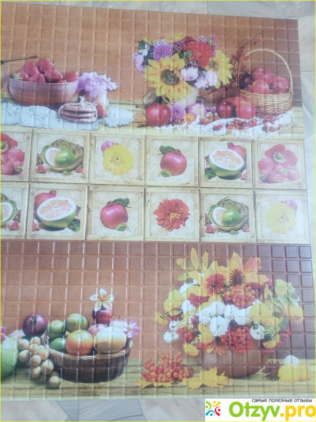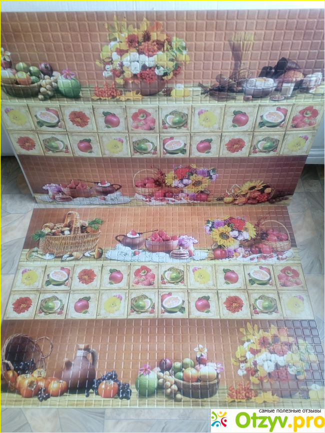 Наконец, все мои попытки увенчались успехом! Свершилось! В строительном магазине увидела симпатичный рисунок, как раз для кухни. В продаже такое панно продавалась не отдельными листами, а в наборе: в упаковке три листа общей стоимостью 1550 рублей.