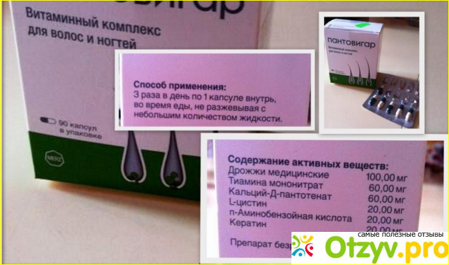 Пантовигар – представляет собой совокупность витаминов и микроэлементов, что содействует укреплению и увеличению роста волос, способствует сокращению их выпадания. Он питает и насыщает их именно изнутри!