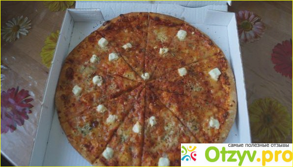 Сама пицца. Тесто тоненькое (как и должно быть у традиционной пиццы), на вкус хорошее (нет привкуса муки), хорошей прожарки (тесто не сырое и не подгорелое). Всегда свежая пицца, доставляется еще теплой (ее не нужно дополнительно разогревать в микроволновке) и очень ароматная. Все ингредиенты свежие.