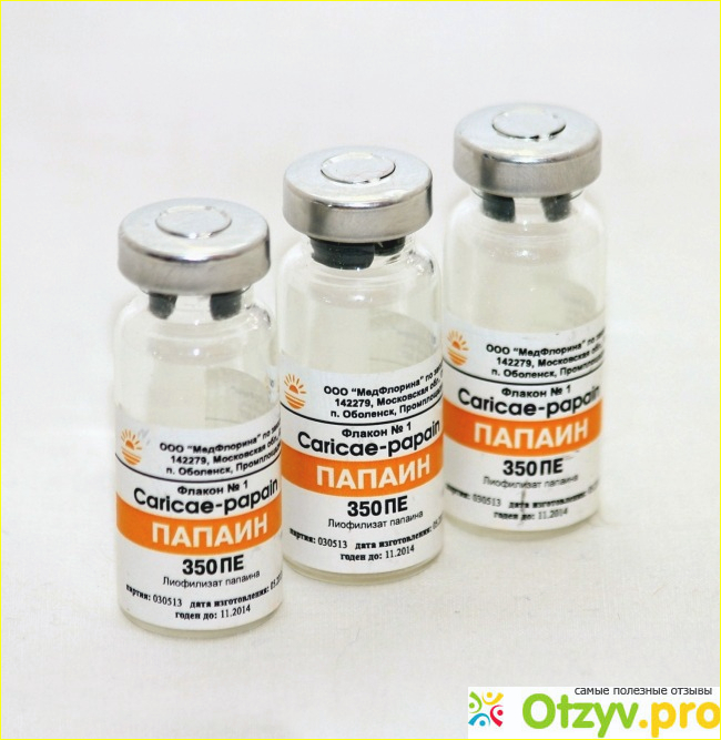 Выпускают папаин в трех видах, это капсулы, гель, и даже в инъекциях.