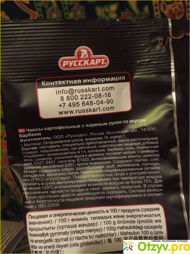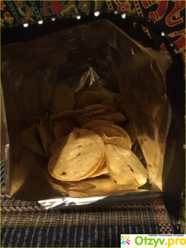Опробовав, я поняла, что эти чипсы теперь буду брать часто, и вам советую). Во-первых, хороший состав, особенно для такой вещи, как чипсы (ни одной штучки с буквой Е замечено не было). Во-вторых, действительно вкусно, очень, чувствуется и картофель, и лук.