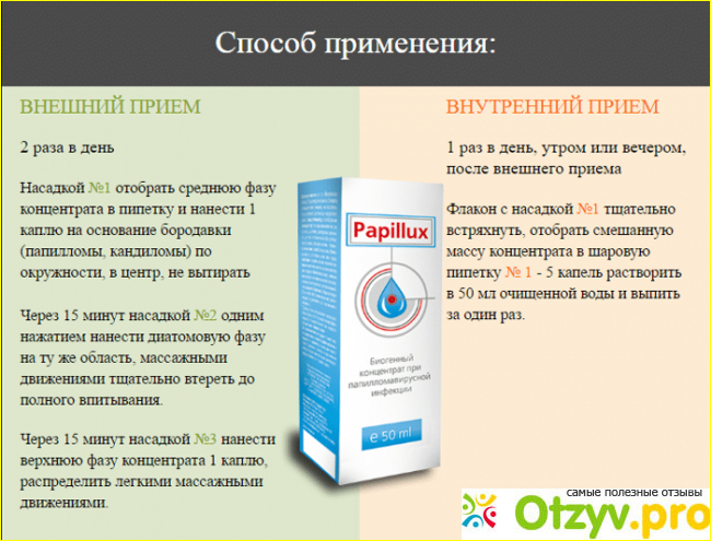 Данный концентрированный продукт Папилюкс включает естественные не изменённые варианты биоактивных компонентов, которые проявляют достаточно высокую активность в отношении многих видов вирусов папилломы человека, вредной микрофлоры кишечника и эпителиальных клеток кожных покровов. Таким образом, основное назначение данного препарата это комплексное действие при заражении папилломавирусом. Данный биологический природный комплекс имеет достаточно сильно выраженные противовирусные, восстанавливающие, иммуномодулирующие и очищающие действия. При его применении следует строго соблюдать указанные дозировки и способ использования, не отходить от прилагаемой инструкции.