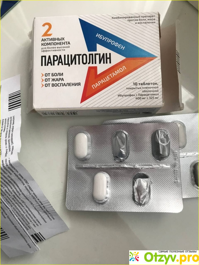 Я приняла таблетку, как только вышла из аптеки, уже не могла терпеть боль, она была ну очень сильной. Через довольно короткое время боль стала утихать, в виске перестало стучать. Когда уже пришла в норму, стала интересоваться, что же это за препарат. Оказалось, это комбинированное средство, содержащее ибупрофен и парацетамол. Видимо эти два компонента в комплексе работают хорошо, потому он и снял мне боль достаточно быстро. Кстати, в инструкции указано, что Парацитолгин можно принимать до трех раз в сутки, но мне не понадобилось принимать даже вторую таблетку, боль не вернулась.