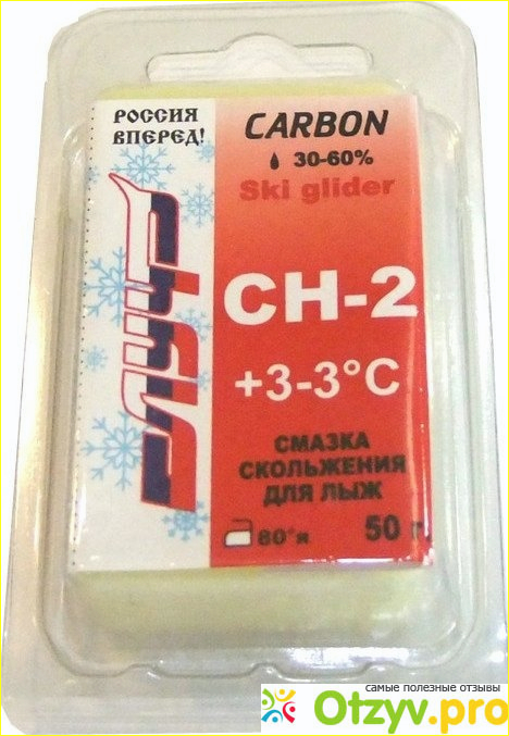 Смазки из серии СН имеют хорошие рабочие и технические характеристики в предназначенных для пользования пределах температур и влажности, особенно они хороши при применении в условиях пониженной влажности. В них не содержатся фторсодержащие добавки и применяются они в детском и ветеранском спорте, туризме, а также для обеспечения тренировок спортсменов профессионального класса. Для смазки СН2 оптимальной температурой является от +3 до 3оС ниже нуля. Применять красную смазку СН2 можно при катании на влажном снегу любой структуризации, преимущественно при наступлении оттепели или же легком примораживании после оттепели. Также неплохо ее можно применять и при слабом легком морозе.