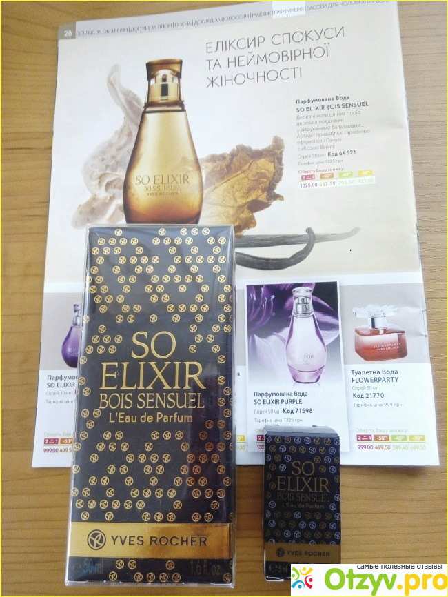 Парфюмер Мари Саламан и Оливье Кресп создали Шикарный Аромат Соу Эликсир Боис который Завораживает, берет меня в плен бальзамическими нотками Ириса и Ванильки. Он красиво играет на коже Зимой, согревает своей темой Вуалью, от него невозможно оторваться, я ношу его с восторгом, он сексуальный, мужчины от него млеют, его страсть и в тоже время нежность передается мне. Я его люблю. Стойкость у него замечательна на коже ощущаю на протяжении 8 часов! На одежде сидит еще дольше. Часто наношу его на мех, от так звучит ярче, что просто невозможно не вдохнуть его аромат. Для себя я приобрела мини Аромат 5 мл для сумочки Клатча, а большой формат 50 мл остается для домашнего использования. Ведь так удобно что Ив Роше придумали мини который так удобен в поездке, миниатюра корая помещается в женскую сумочку и не занимает много места. Девочки всем советую приобрести данный аромат, он Вам безусловно понравится и будете отправлять него в восторге. С ним просто не возможно не подружиться.