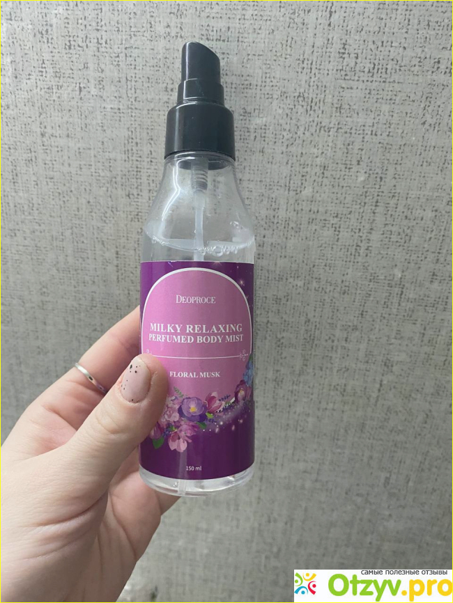 вкусно пахнет, запах под выветривается и становится более нежным, были еще варианты других вкусовых запахов, но я остановилась именно на этом, аромат цветочного мускуса. Вообще фирма DEOPROCE, зарекомендовала себя с хорошей стороны, я подбирала себе мист для тела по отзывам и остановилась на этом, обьем у меня 150мл так как больше обьем не нашла, правда быстро кончается, но цена этого миста приятная поэтому по карману не ударяет чтобы часто его покупать.