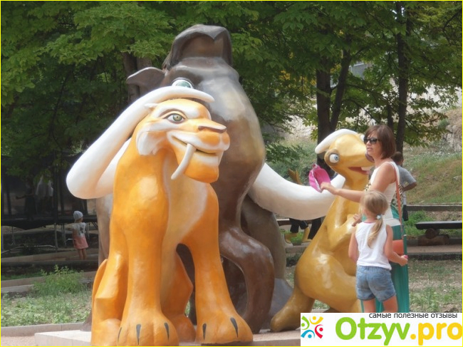 Детям очень интересно и взрослым конечно тоже. Любимые герои их мультов. Так же есть детская площадка. Деревянный комплекс. Батуты, скалолазание.